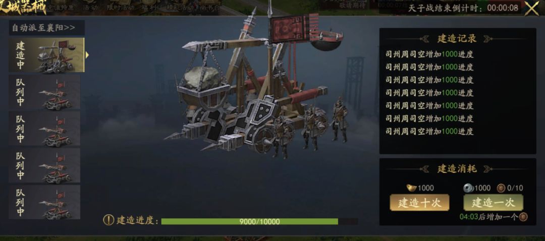 而在天子战中,新增箭弩车和投石车建造进行协助攻城、记入战功。攻城器械与英雄的攻城安排均将会成为主公战场策略思考的新考验。