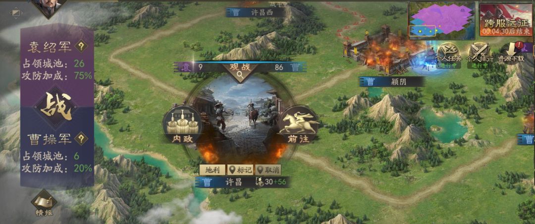官渡之战也将是两个阵营的跨服对抗赛,报名的主公将会被分为【曹操军】、【袁绍军】阵营,并在官渡之战的沙盘上进行城池占领。