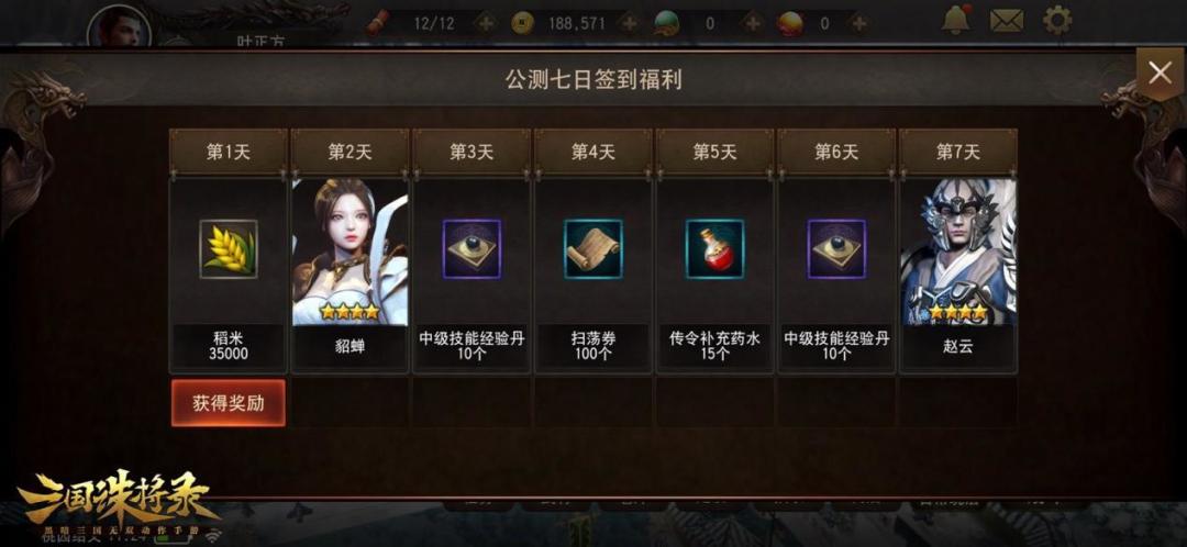 测试期间“迎新盛典”中的一系列活动和福利,在公测之后也是丝毫不打折扣!登录游戏即可获得【免费无限十连】,每抽必出金色武将!公测前七天每天登录,就能分别领取对应档位的奖励,登录签到第二天可领取国色天香的貂蝉,第七天更有强力输出的赵云,以及大量珍稀养成资源!此外,完成新手任务还可获得七星猛将张飞!在以上新手和签到活动中,叠加抽卡券的加持,主公们将享受超过200次连抽的重磅福利,装满武将池不再是梦!