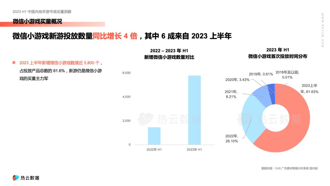 从上述报告趋势,可以看到手游买量市场依旧低迷,但已经有回暖趋势;微信小游戏则在买量方面发展迅速。