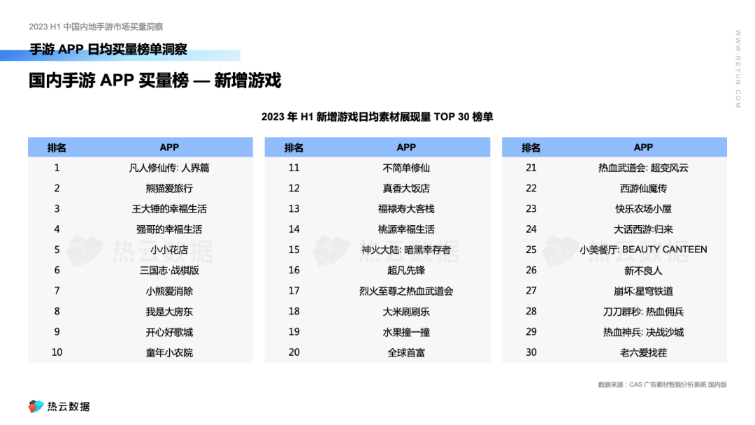《凡人修仙传:人界篇》《熊猫爱旅行》《王大锤的幸福生活》位列新游买量榜前三。