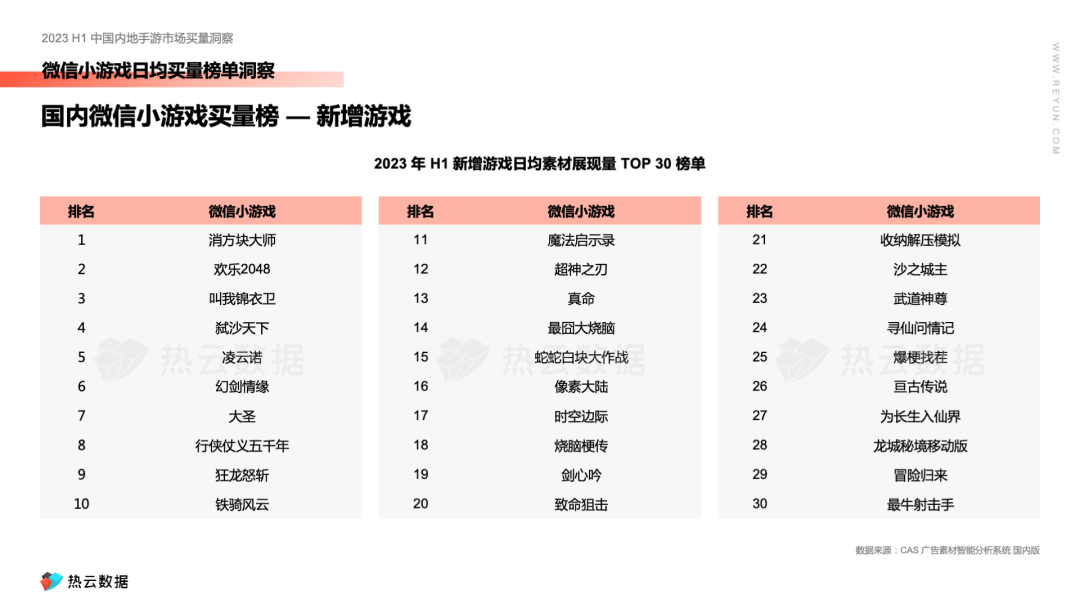 《消方块大师》《欢乐2048》《叫我锦衣卫》位列上半年微信小游戏新游买量榜前三。