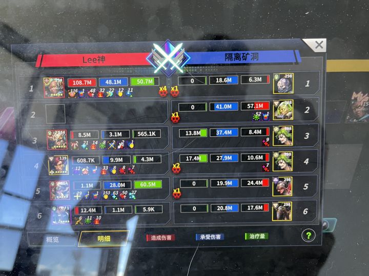 按对面6角色计算,雷哥挨2下,菲比晕2个,剩下2个怪。