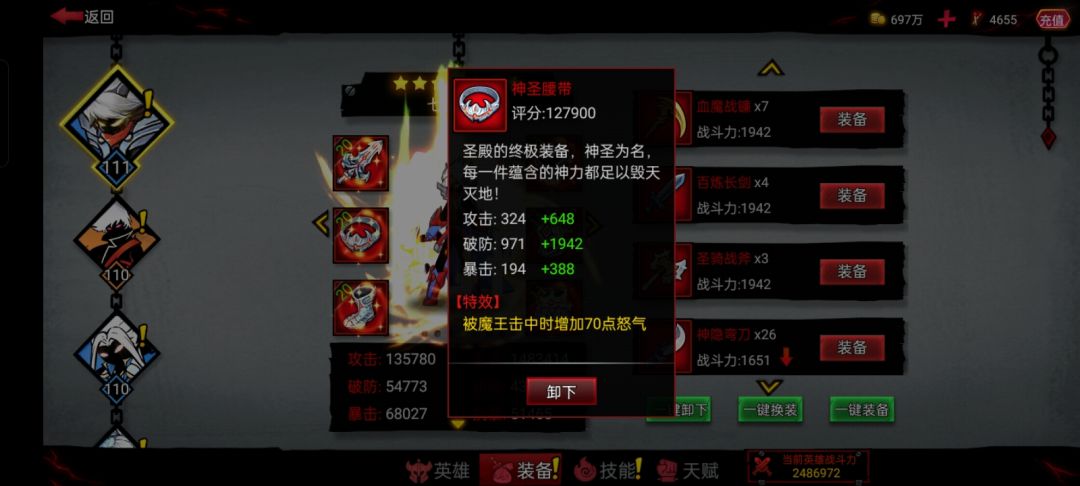 神器方面只需要升级斧头还有雷神之锤还有那个罡风战戬其他的神器可以收集可以加属性