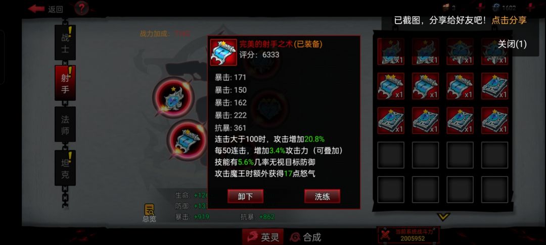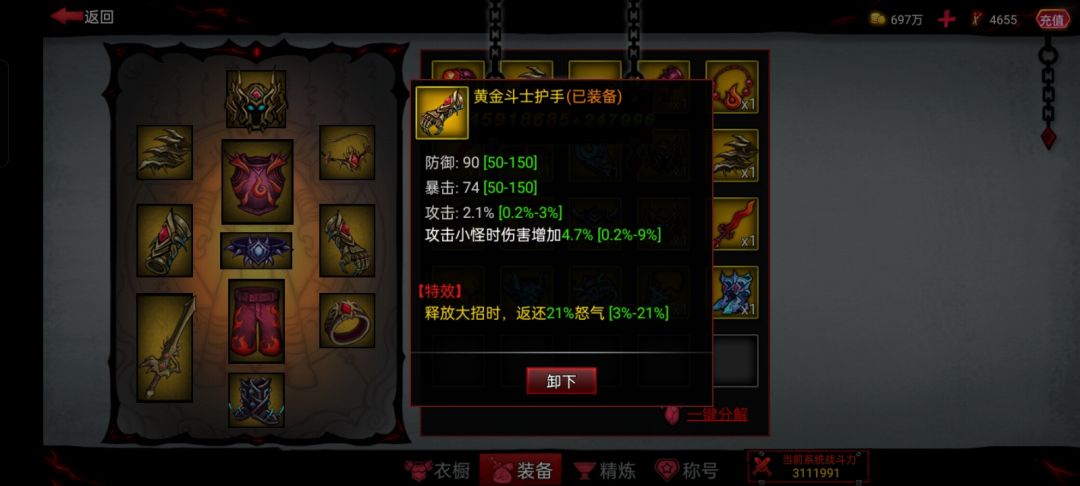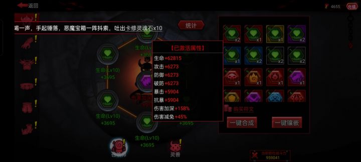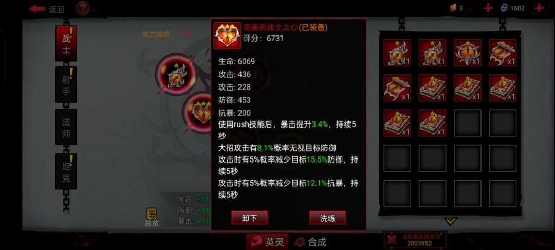 如果需要洗属性的话那么魂只要洗魔王减伤达到8/100就已经是很好的了后面就是洗术,这个是无限大最重要的东西红色一星最多可以洗出来21的魔王怒,然后往下每降一星魔王怒减一,术还可以洗连击50加攻击和连击100加攻击这些都是需要洗的,最后就是心了这个需要洗减魔王的抗爆和减防御大概在12/100往上就是不错的了,我的如下