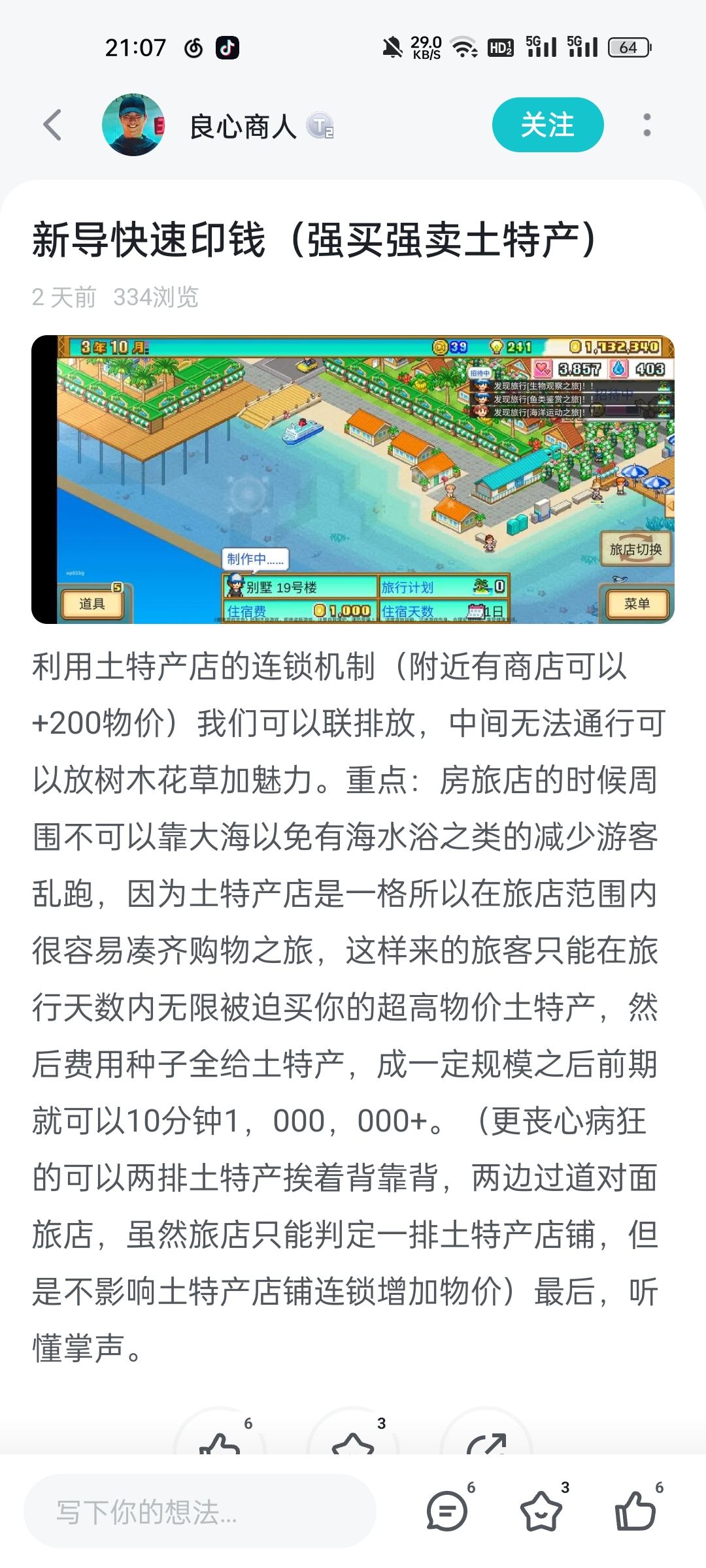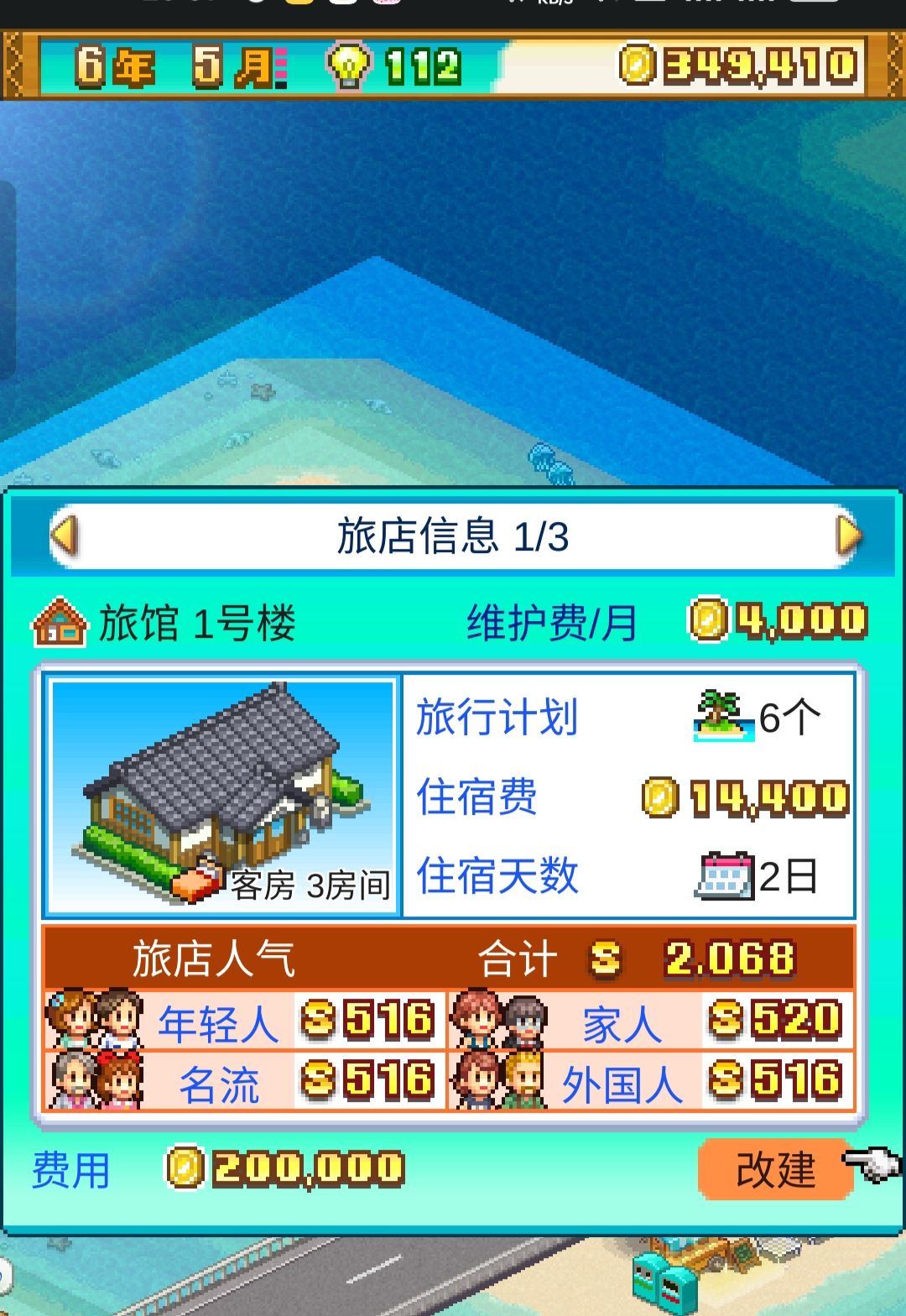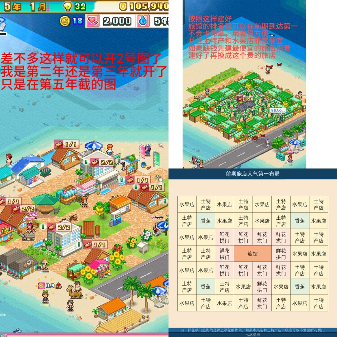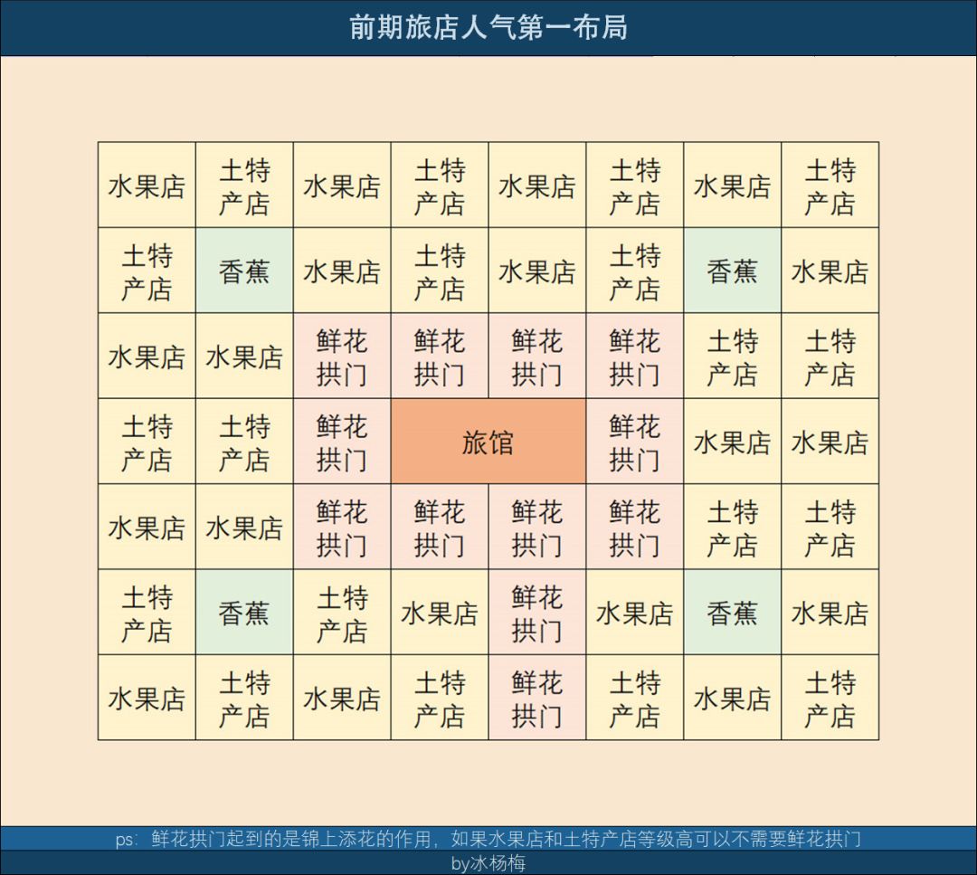 建好了前中期就完完全全可以获得s级旅店,过印章什么的都非常方便,如果你土特产店和水果店等级不高,就去买魅力提升的种子用,建的时候怕缺钱就先建别墅,建好了再换成旅馆