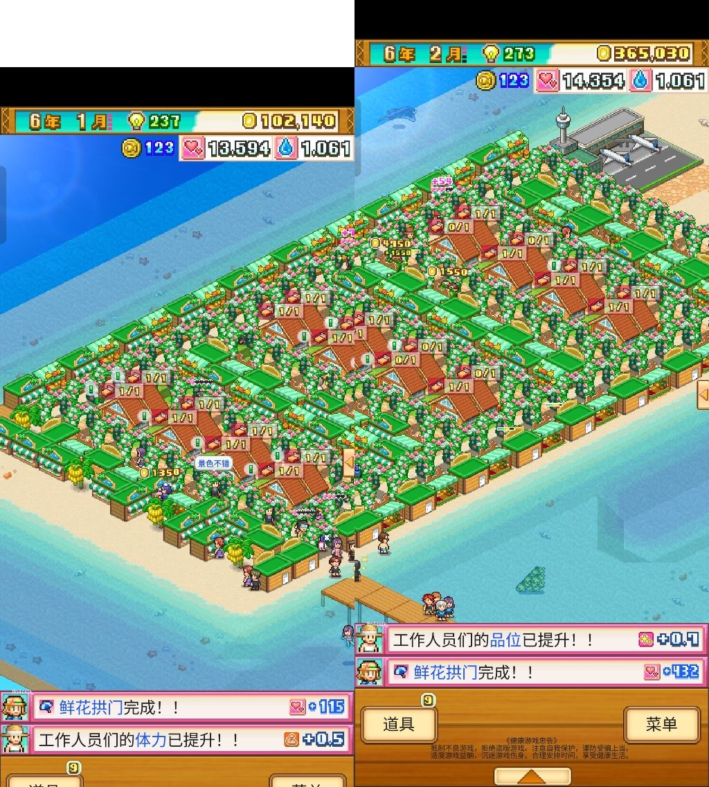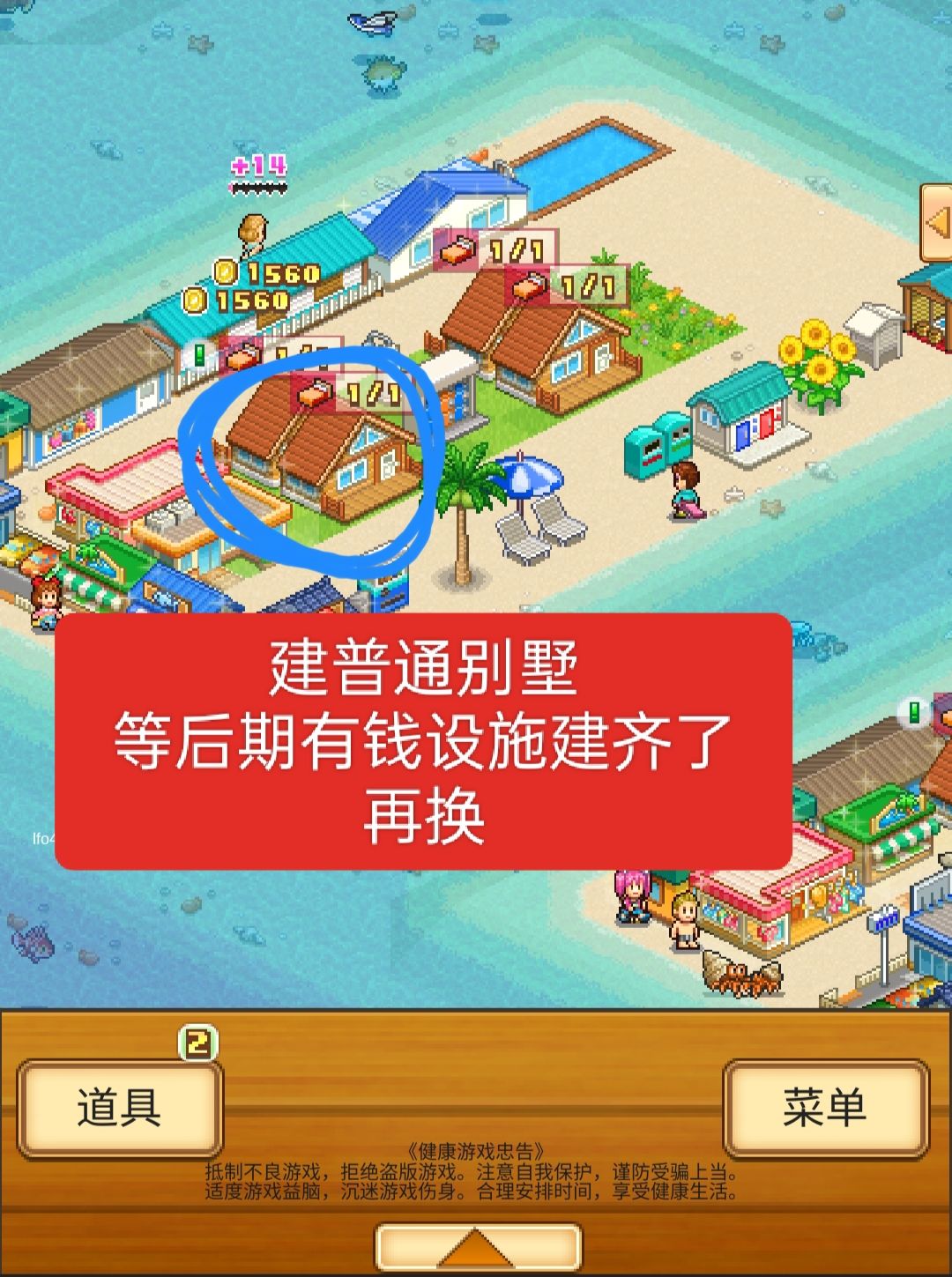 关于后期印章就是缺什么弄什么,比如缺休闲,就建鲜花拱门或者休闲椅配椰树,后期基本不用担心亏钱的问题