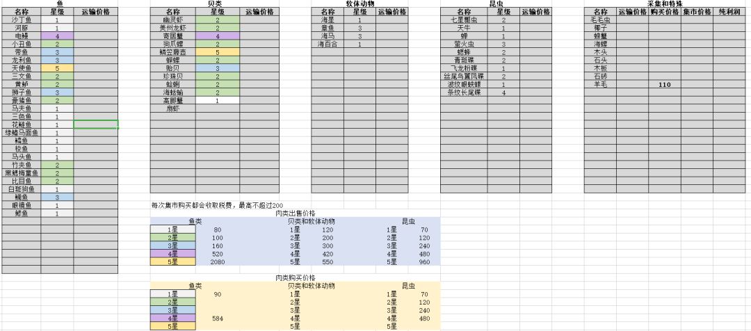 以下表格运输和集市要搞清楚