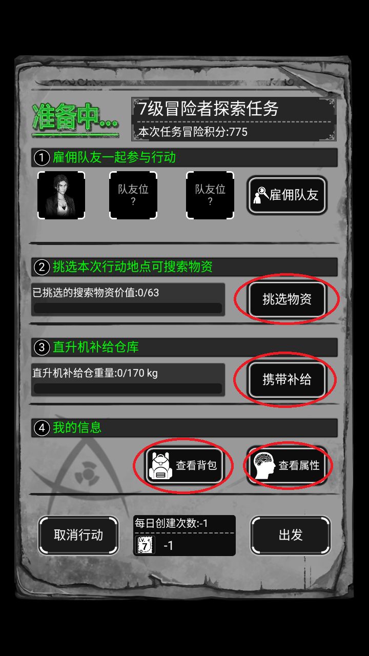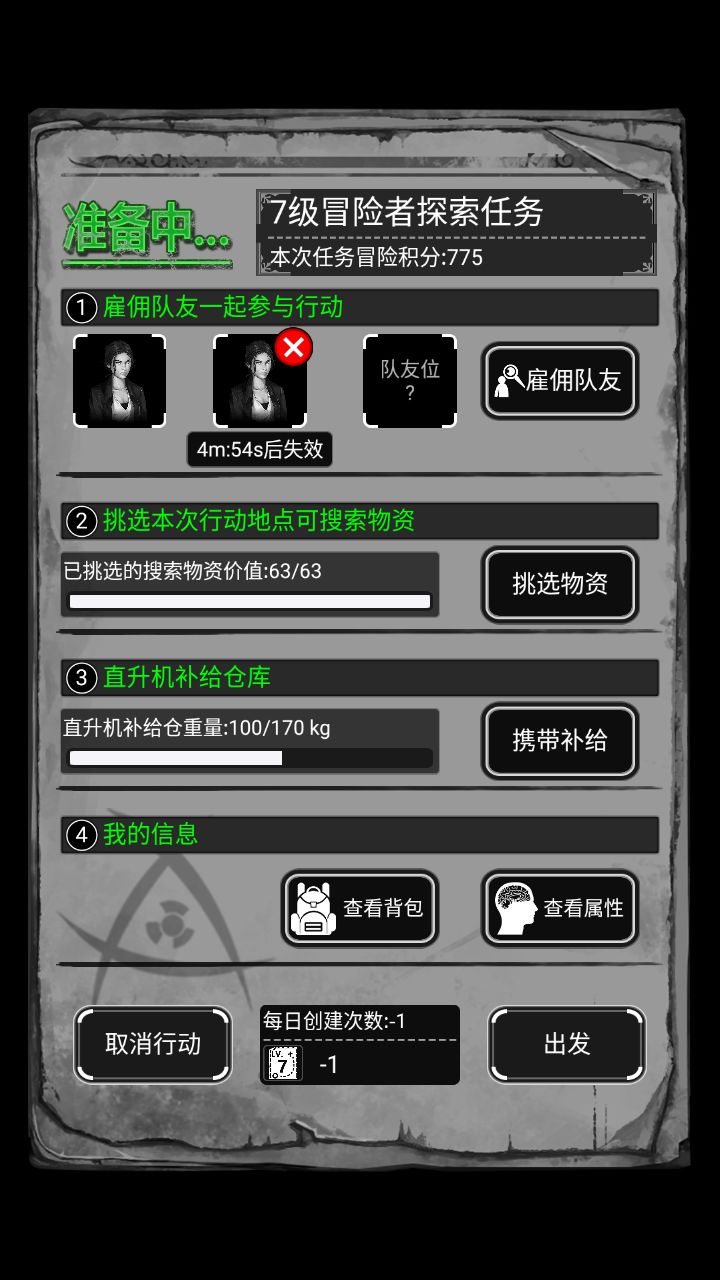 进入冒险行动集合点,内部情况如下