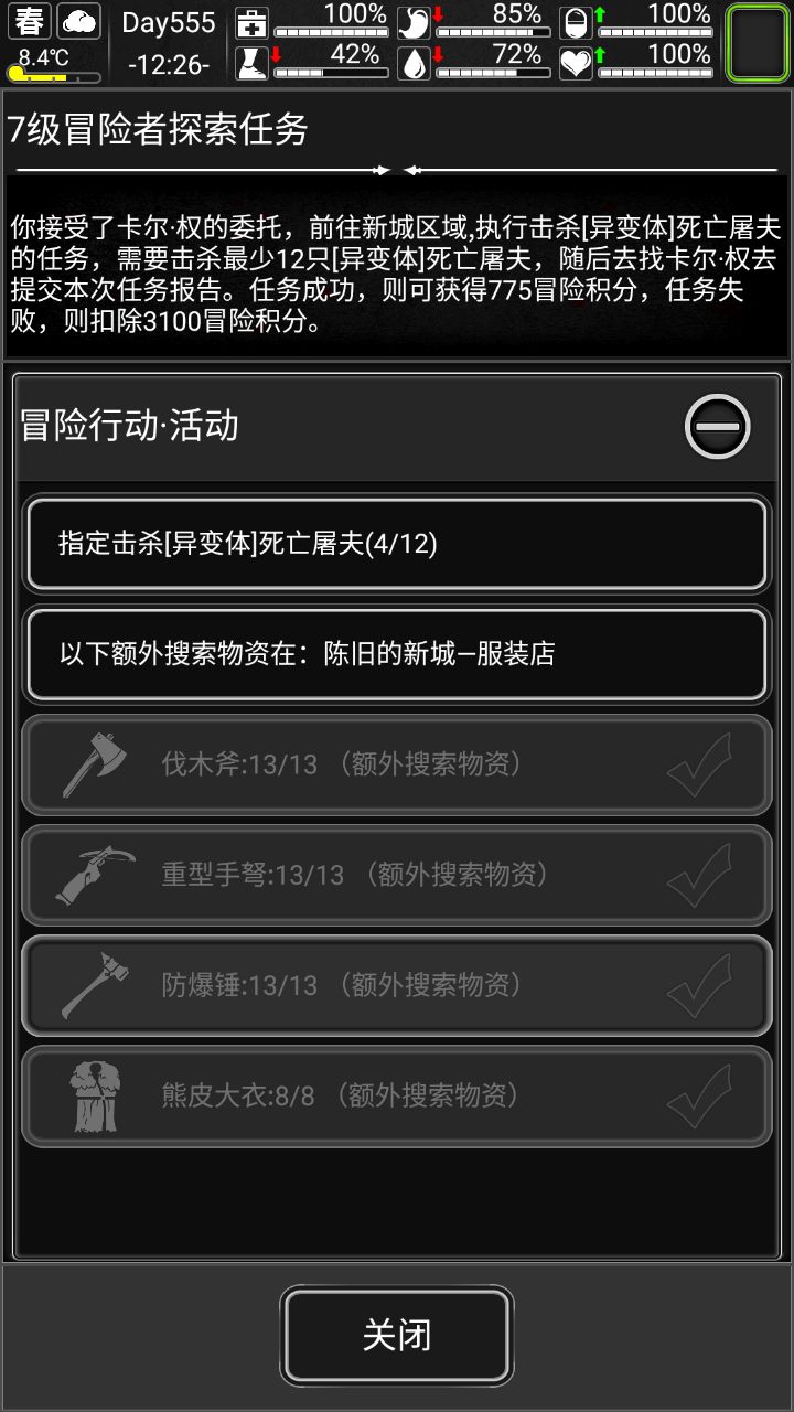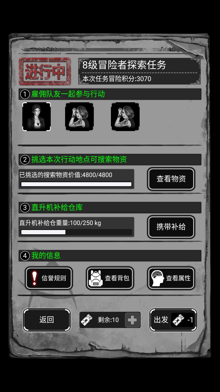 所以在任务准备的时候,携带的物资不要太多,首先保证物资一定要足够完成任务,其次就是物资不要过多,没用完的都是要带回去的,会占负重。