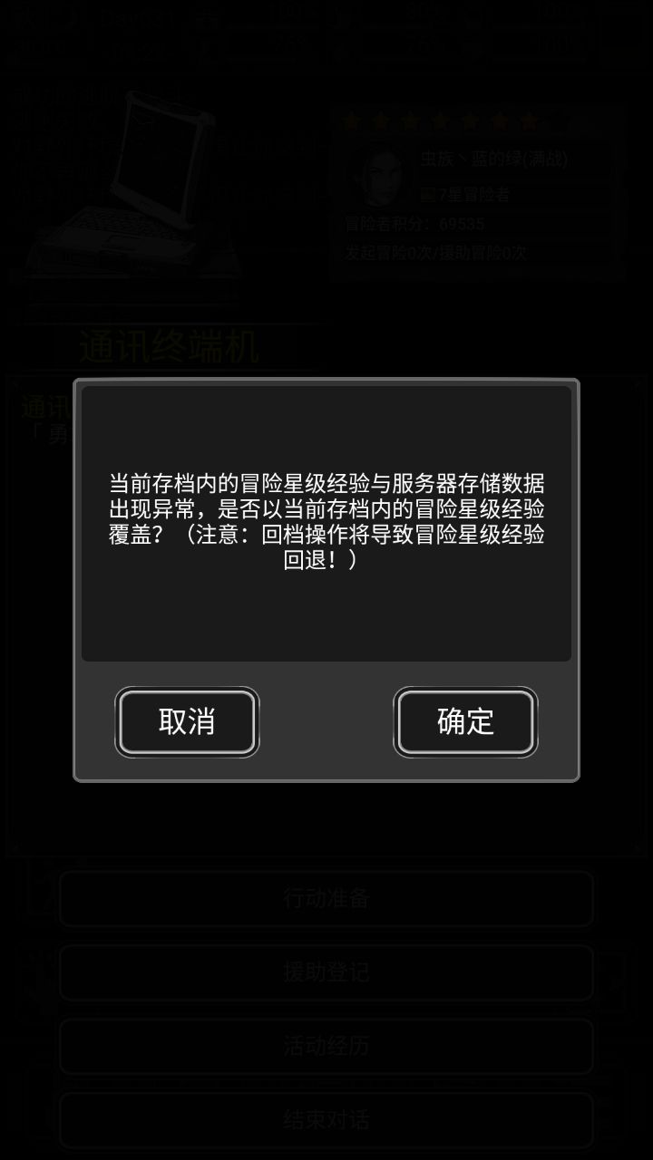 一个档刚开启新城,这个档的角色为1星冒险者,积分为0,冒险次数都为0。