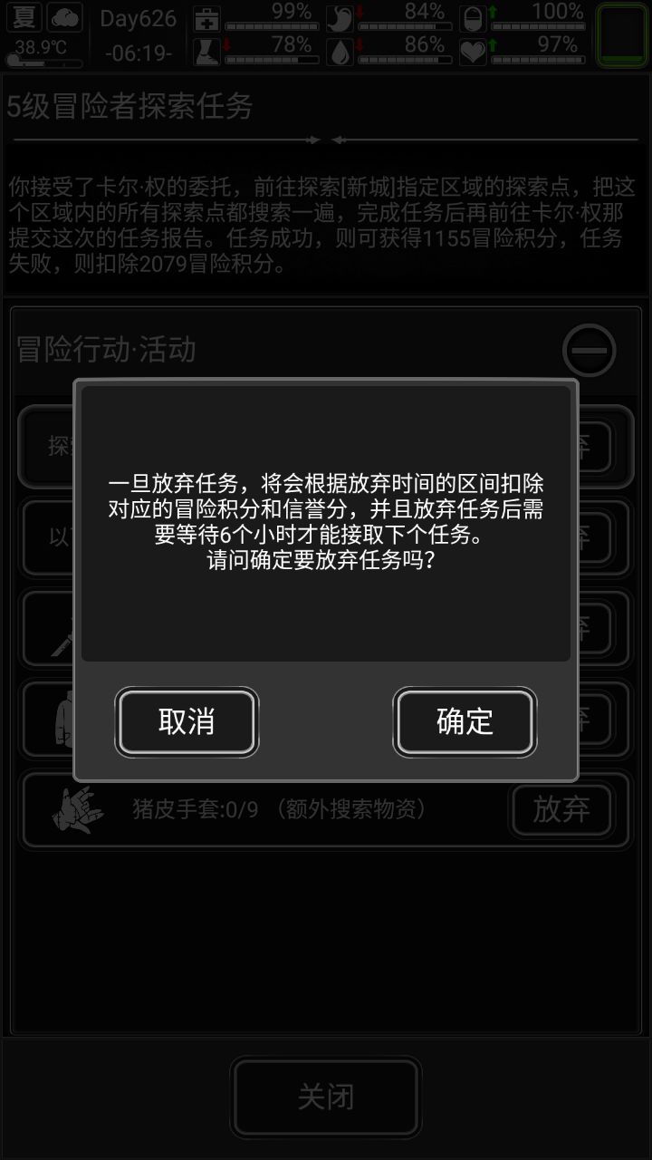需要注意的是,右侧的所有放弃选择都是相同的,都表示放弃整个任务,而不是说可以只放弃一部分。