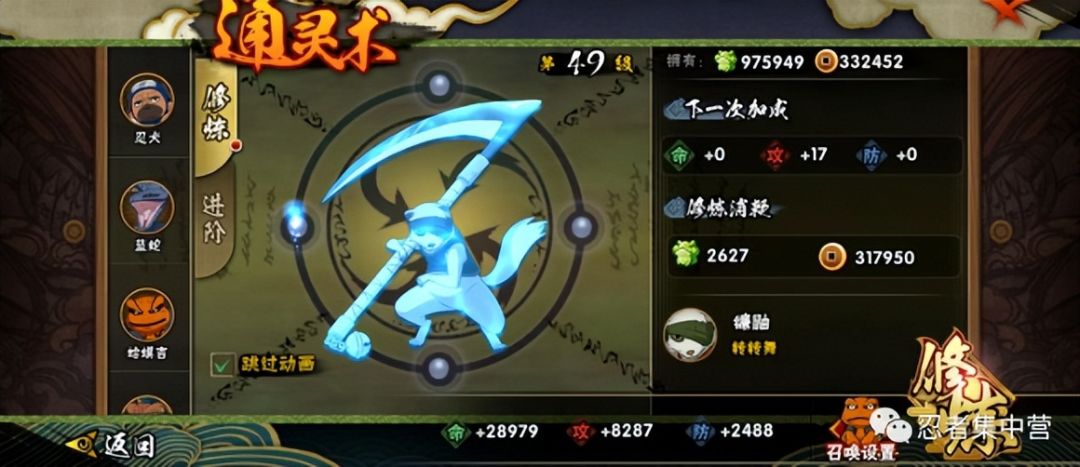 3.通灵勾玉但是也是有一个另外的,那就是我们通灵在到达5阶的时候,我们开启一个紫色勾玉槽是只需要100的炼精石的,这时候你的战力加成是成正比的,100炼精石<一个紫色勾玉槽。