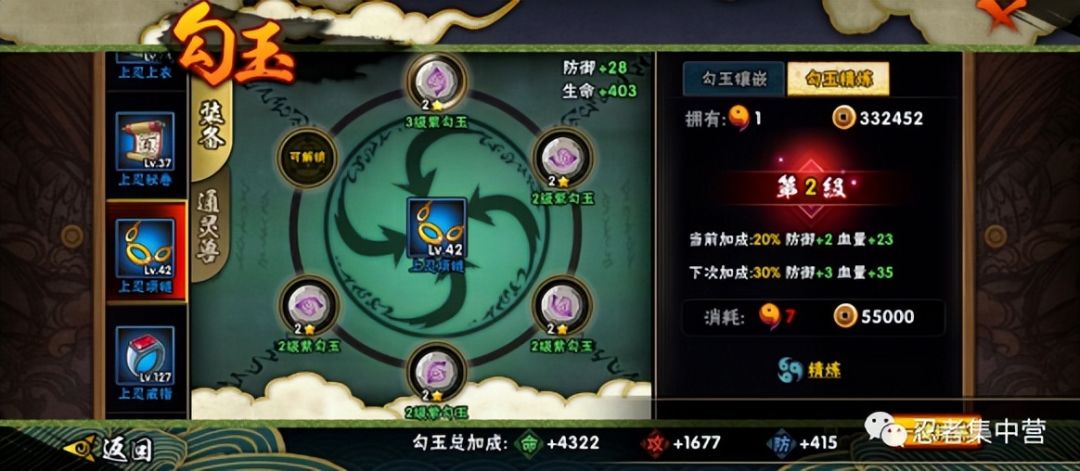 本文首发【忍者集中营】公众号,未经授权禁止转发至其它平台。嗨喽,各位小伙伴们大家好。火影忍者是一款非常受欢迎的格斗手游。在火影忍者中,勾玉也是提升战力的一种方式,但是可千万不要觉得勾玉只是简简单单的升级也按照就可以了,那你就大错特错了,接下来小编就为大家来做一期详细的勾玉玩法介绍。勾玉玩法介绍详细玩法1.勾玉介绍首先大家要知道的,每一个勾玉的升级都是需要三个和他等级一样的才能升级,所以大家在升级勾玉的时候,最好就是平均一点的升级,不管是宠物还是装备的都是去安装等级一样的勾玉,这样放的好处是战力会增加的很平滑,唯一不一样的只有勾玉的炼精等级不同,加的战力也是会不同的。