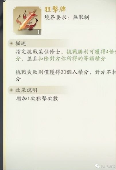 本文首发【凡人礼品码】公众号,未经授权禁止转发至其它平台。嗨喽,各位小伙伴们大家好。凡人修仙传人界篇是一款和小说联名的游戏。云梦试剑和瑶池花会这两个活动还有不会玩的小伙伴们,这一期可要仔细的阅读了哦,小编将会把这两个活动的全部攻略写出来。【云梦试剑】首先这个活动,每一次都是会给一定的挑战次数的,每一次匹配如果赢了的话,是有60分,输了会扣20分,所以尽量的还是赢了加的分比较多,每10分钟可以挑战一次。活动种在商店购买的狙击牌是很重要的,每使用一次是可以获得4倍的积分的,也就是240分,然后最好是在搭配一个八倍符一起使用,这样赢一把是可以获得1920分的,一下就可以拉开很大的差距。