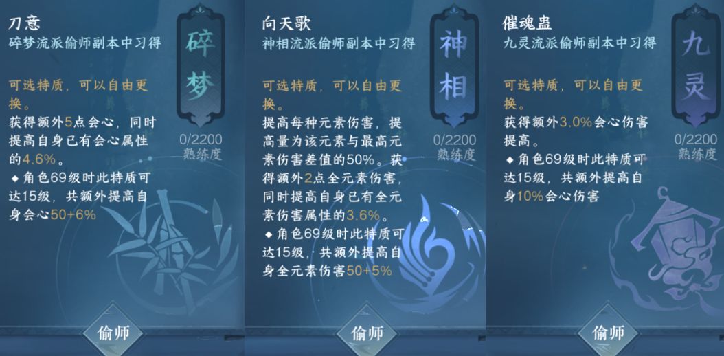偷师没做的可以补上了,偷过铁衣的后,输出偷碎梦的【刀意】,九灵的【催魂蛊】,神相的【向天歌】,偷到手就换别的职业!