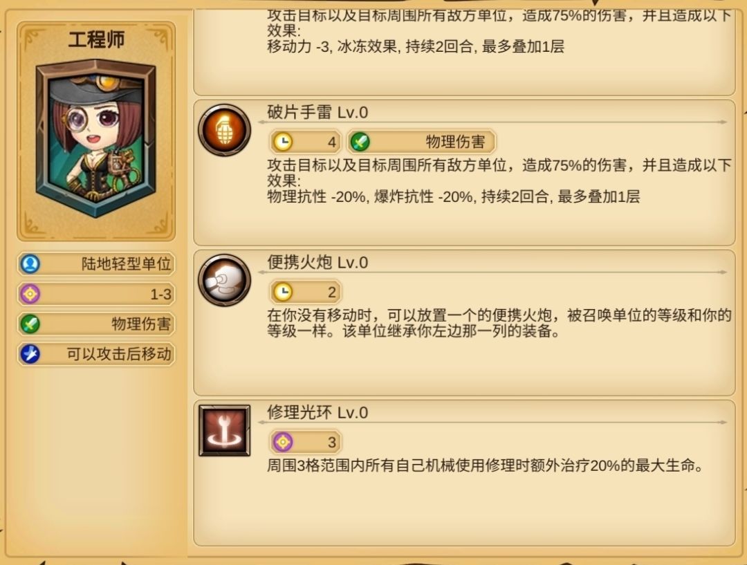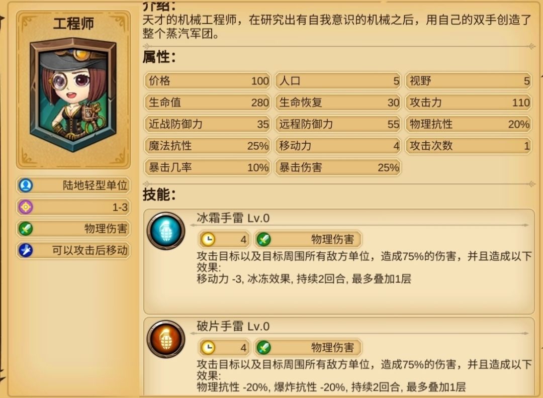 工程师有火炮技能,相当于好几个远程单位在输出,强度和娱乐性都很高