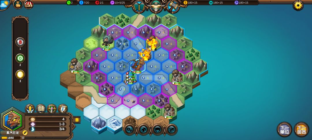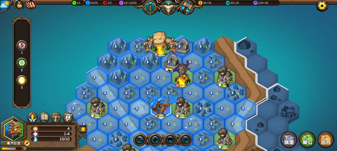 这个防御者太肉了,蒸汽巨龙再A一下防御者,可以延长大火地块的持续回合,还有英雄天赋腐蚀的持续回合