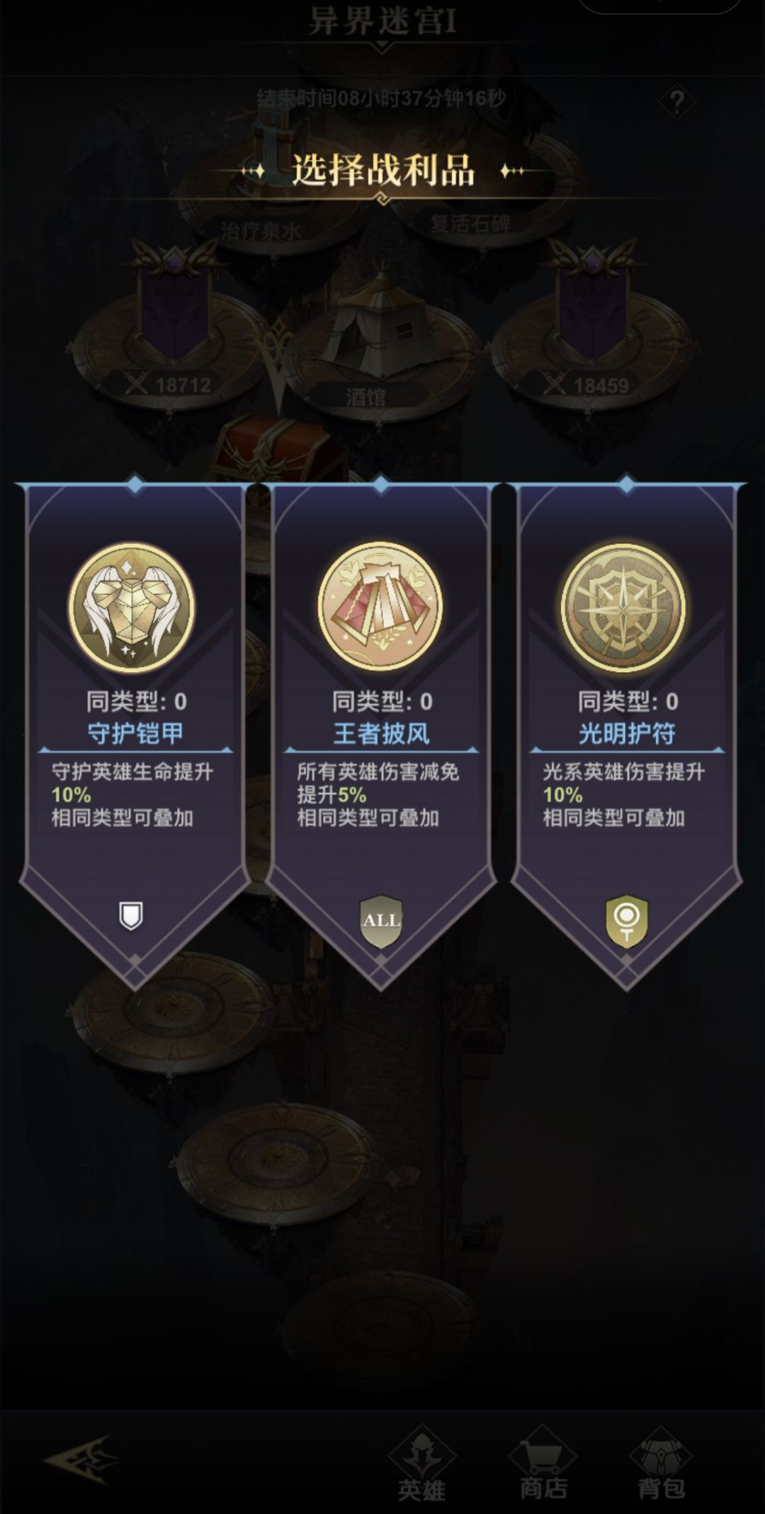 3.每场战斗胜利后可选择一份战利品奖励,战利品效果只在该次远征中生效。