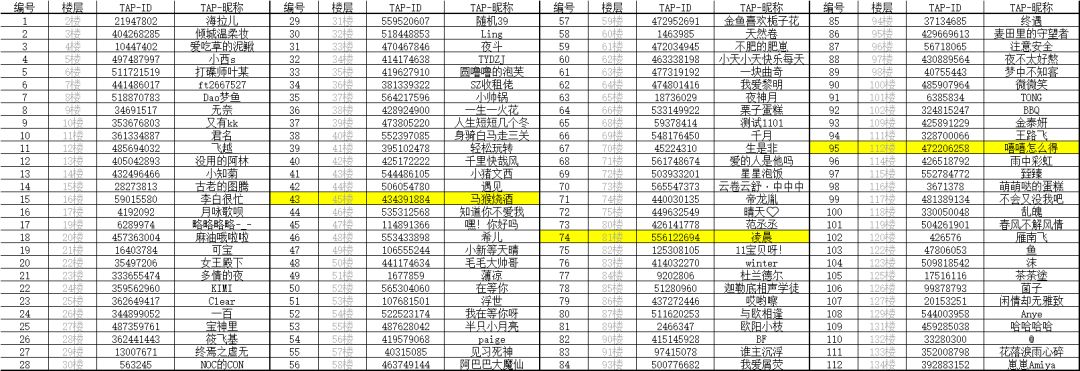 (抽奖采用随机数生成,根据首次回复顺序进行编号,已剔除重复名单及玩家反馈的同IP刷号名单)