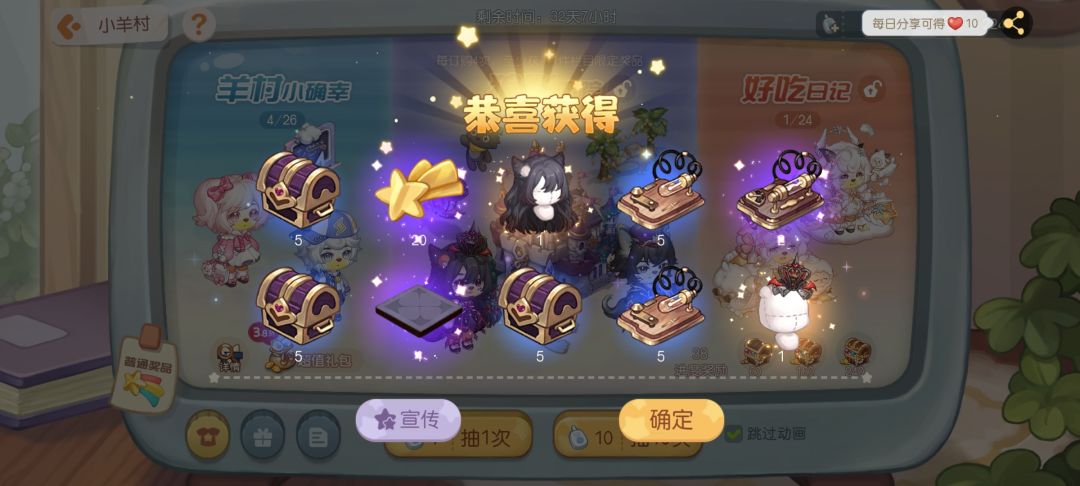 共抽五十一发,单抽未截图,可以很肯定的告诉大家,不管你怎么抽,垃圾都会多过服装家具那些,而且这次转盘取消了十抽,三十抽宝箱,无疑是很黑了。
