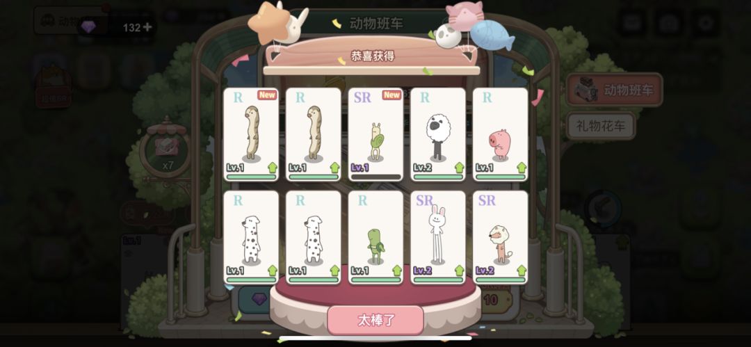 浅抽了一下10连,3个sr,不过没有房子给动物住了,除非你充钱开摩天大楼,这就很尴尬了,第一天就卡这个逼氪会很难受,建议5到7天的时候再逼氪,类似出个活动跟战令一样或者出新的小动物让我们抽。