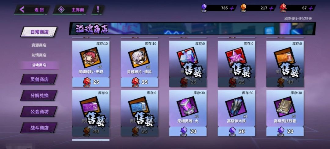 3.黑市——溢魂商店,每个月可以用SR级溢魂碎片兑换灵将契约券X张。