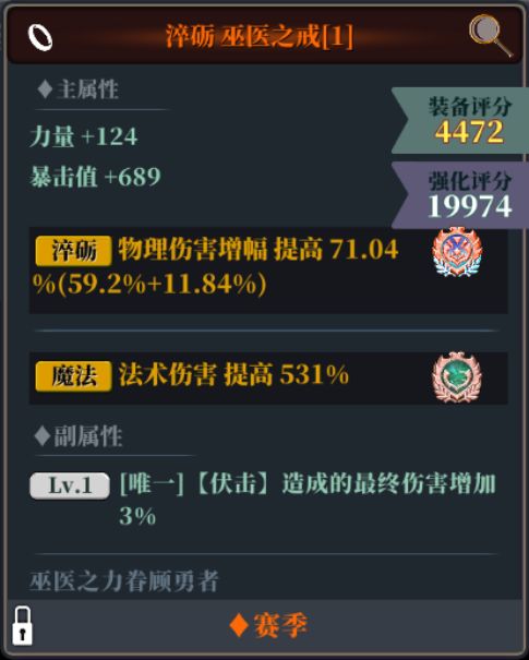 戒指词缀新增「淬砺」,提供物理伤害增幅属性加成。