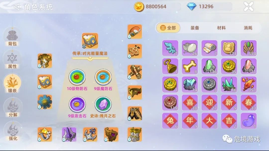 每件装备有概率有有能镶嵌的孔,最多为4孔,橙色装备必定为4孔,紫色的孔最好,可以镶嵌攻击力,绿色的孔是废物。