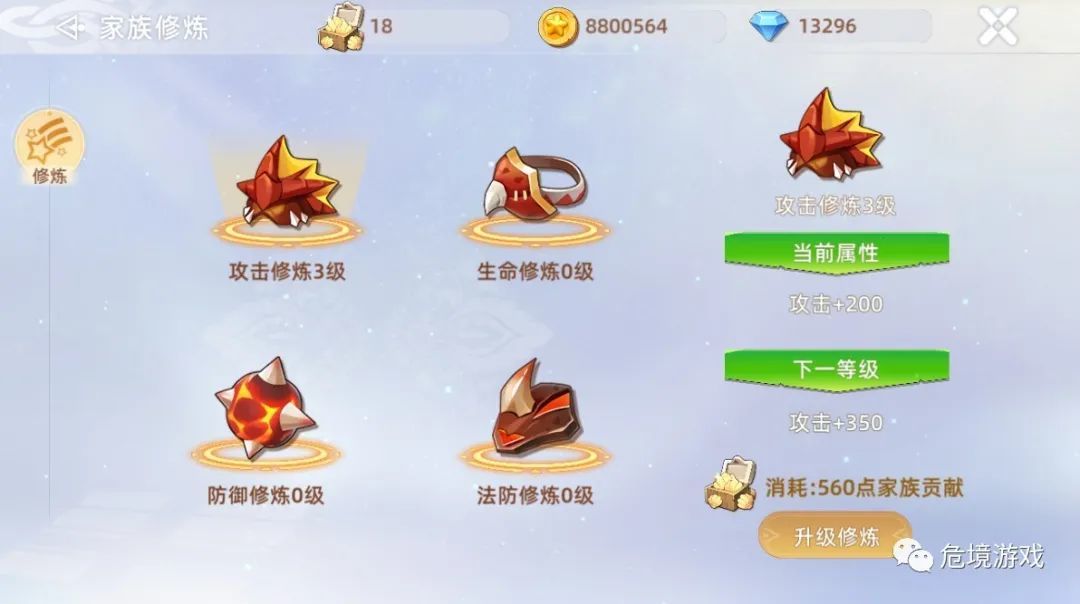 家族新增修炼,每日捐献可以获得家族贡献点,家族每日任务可以做10次,1次5贡献点,21:30分也有家族入侵,得5贡献点。建议只点攻击。