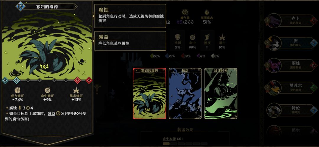 二Buff:如上文所说暴击一次可以加十多滴血,推荐100%暴击,这会让寡妇变成移动泉水,一次几乎快20滴直接状态回满(实在不行可以刷10%的暴击buff)
