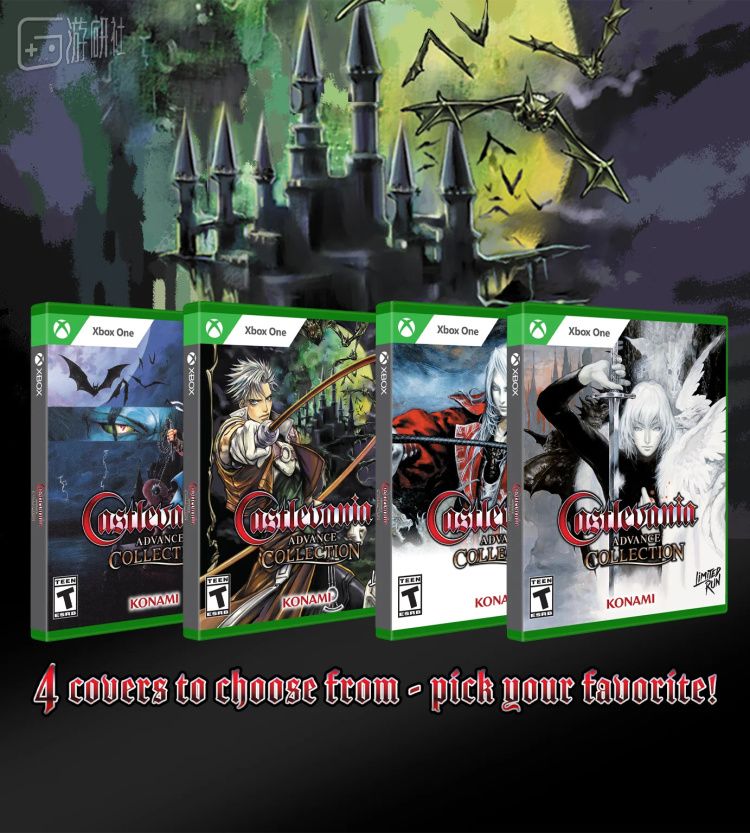 4.Limited Run Games 宣布推出实体版《恶魔城 Advance Collection》,7月28日开启预订,PS4/Xbox One/NS版本均有四种封面可供选择。除了《恶魔城:月轮》《恶魔城:白夜协奏曲》《恶魔城:晓月圆舞曲》《恶魔城XX》外,还收录了许多未公开的游戏设计稿和艺术图。