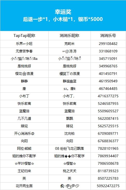 随机抽选20位小村民送出:后退一步*1,小木槌*1,银币*5000;