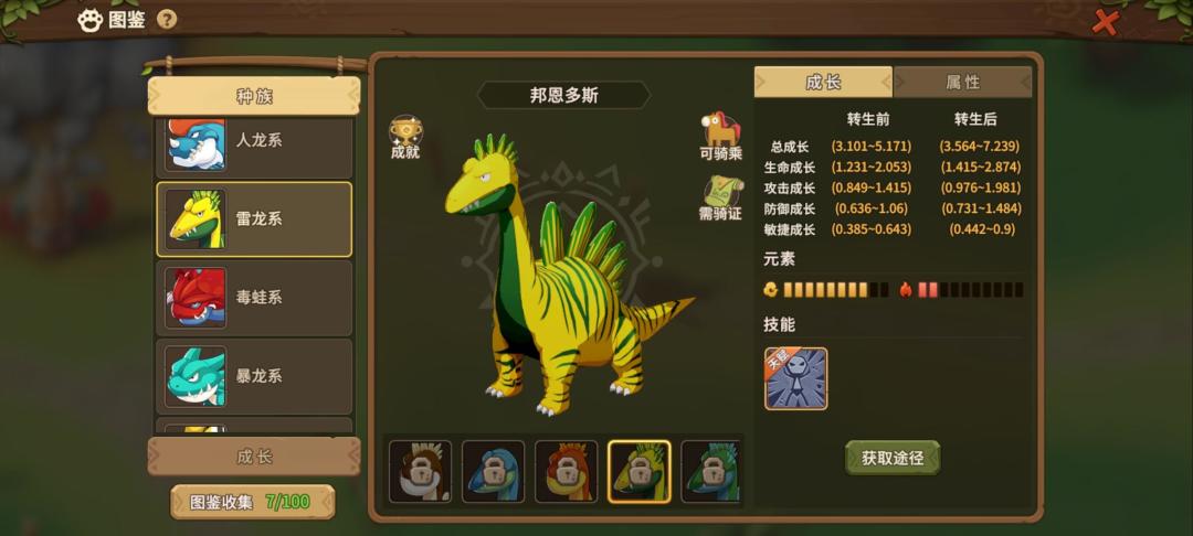 (1)雷龙:硬化皮肤天赋可以提高生存能力。