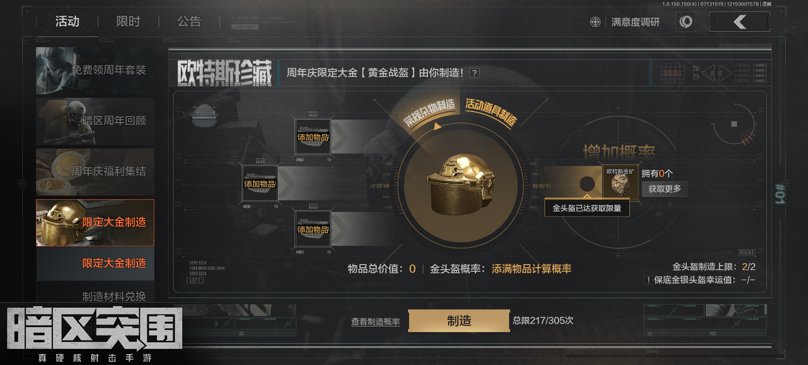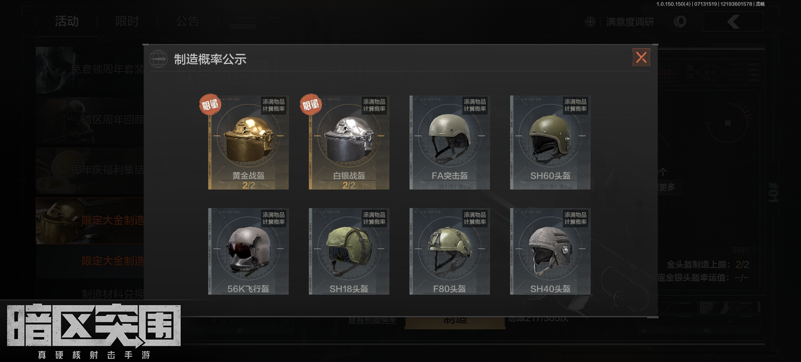 217抽,300万,头盔价格也低,不划算(仓库小金卖了200万全搞这活动了)