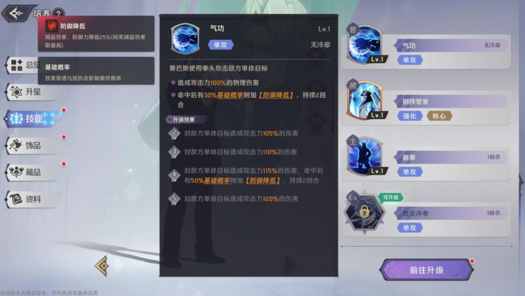赛巴斯的核心技能是被动,因此需要优先升级,其次为EX技能,是赛巴斯的主要爆发技能,可次要升级。