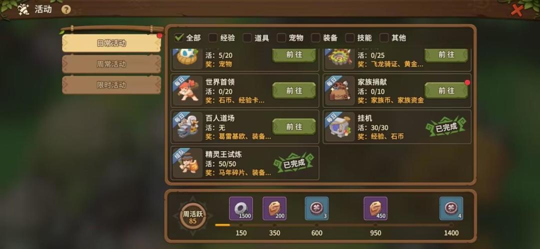 精灵王的试炼:此活动每天可获得一次免费次数,除了消耗门票和累计次数之外,我们每天只能有一次挑战机会,所以一定要在开始挑战之前做好准备,在活动内退出将直接扣除次数。在整体打法上,有小怪先清小怪,最好有一位高敏辅助提供解控,消除boss的负面buff,一定要保证血量蓝量,如果输出不足也可利用续航拖一下。