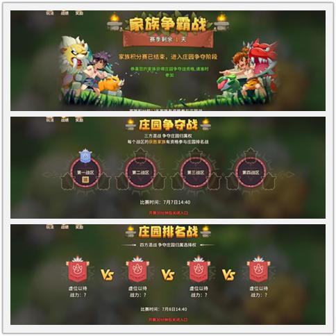 家族称霸由积分战、庄园战和庄园排名战三部分组成,积分战需要家族两两对战,获胜获得积分,积分多的家族将晋级至庄园战;积分战前十二名,将会被随机分为四个战区,进行三方混战,获胜的家族可以晋级排名战,还能获得庄园归属权;庄园排名战,四大家族针锋相对,将决出家族排名,排名较高的家族可以拥有优先选择庄园的权利。