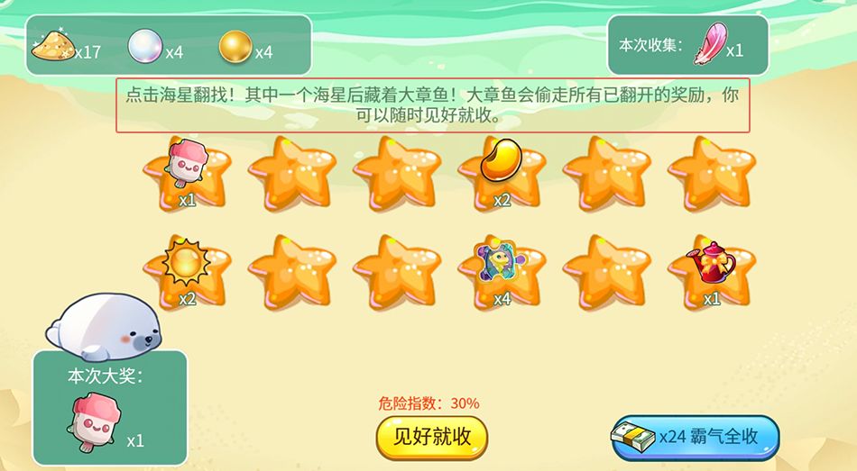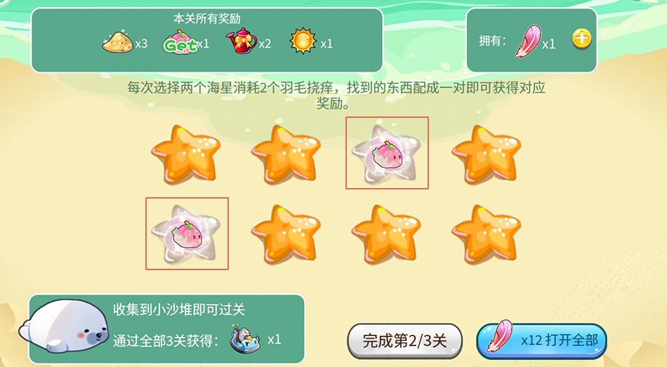在关底,我们会使用路上收集到的羽毛来挠海星,预祝鱼友们能在海星下面翻出超多奖励!~
