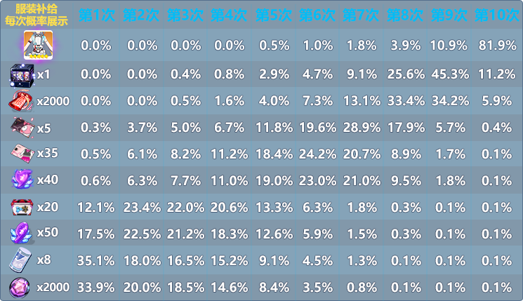 第5~10次补给,可获得第1档、第2档、第3档和第4档中的任一补给内容。