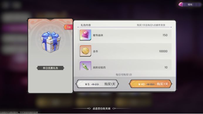 除了通行证以外,每日礼包可以考虑买满,每天都可以获得魔导晶块、流星许愿、金币等道具,最重要的是礼包中的汉堡(体力道具),可以额外获得体力,这样就可以更快的提高账号等级、解锁更多玩法、获得更高的战力上限。还有等级礼包,也可以大幅度的缩减前中期的发育时间。