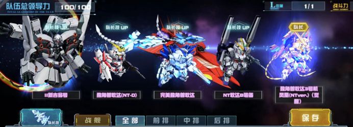 这是一支由UC系列机体组成的队伍,推荐指数较高。