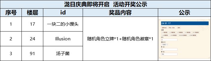 ▷参与楼层超过50楼,抽取3位调查官送上【随机角色立牌*1+随机角色徽章*1】。