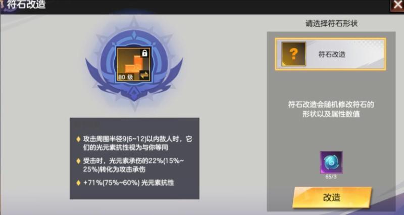 符石改造也是符石系统的重要组成部分,当冒险者急需镶嵌某个符石,可以通过符石改造系统,消耗符石洗练石来随机改造符石的形状。符石洗练石可以通过在精品商店消耗钻石购买符石洗练包获得。需要注意的是,符石改造玩法在改造符石形状的同时,也会随机修改符石属性的数值哦~