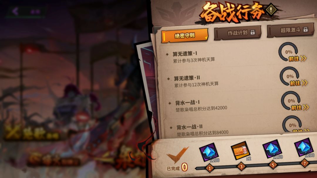 活动期间,每周四将解锁一期「备战行务」,共三期。层层深入、激战当前粮草先行!