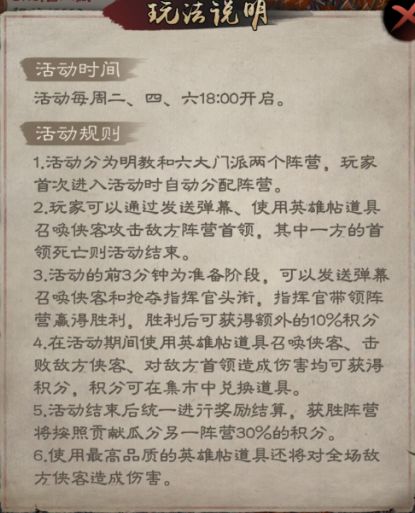 1.2 阵营分配:进入活动时自动分配为明教或六大门派。