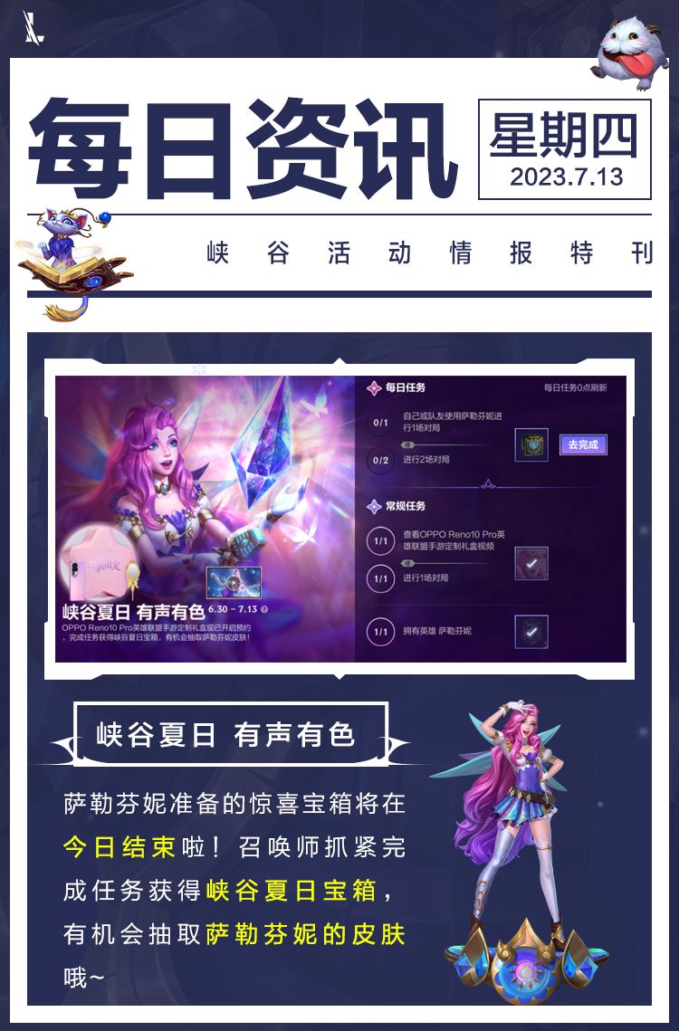 奖励:史诗皮肤臻享卡,萨勒芬妮峡谷夏日宝箱,萨勒芬妮英雄畅玩卡