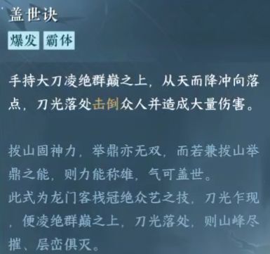《盖世决》学习条件:需要成名赏达到踏歌沧海,还要信物,盖世密卷