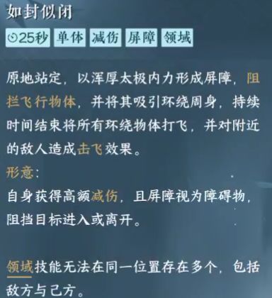 门派武学:《如封似闭》新加入门派就可以学习。