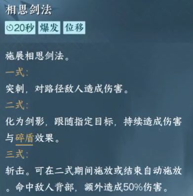 门派武学:《相思剑法》新入门派就可以学习。